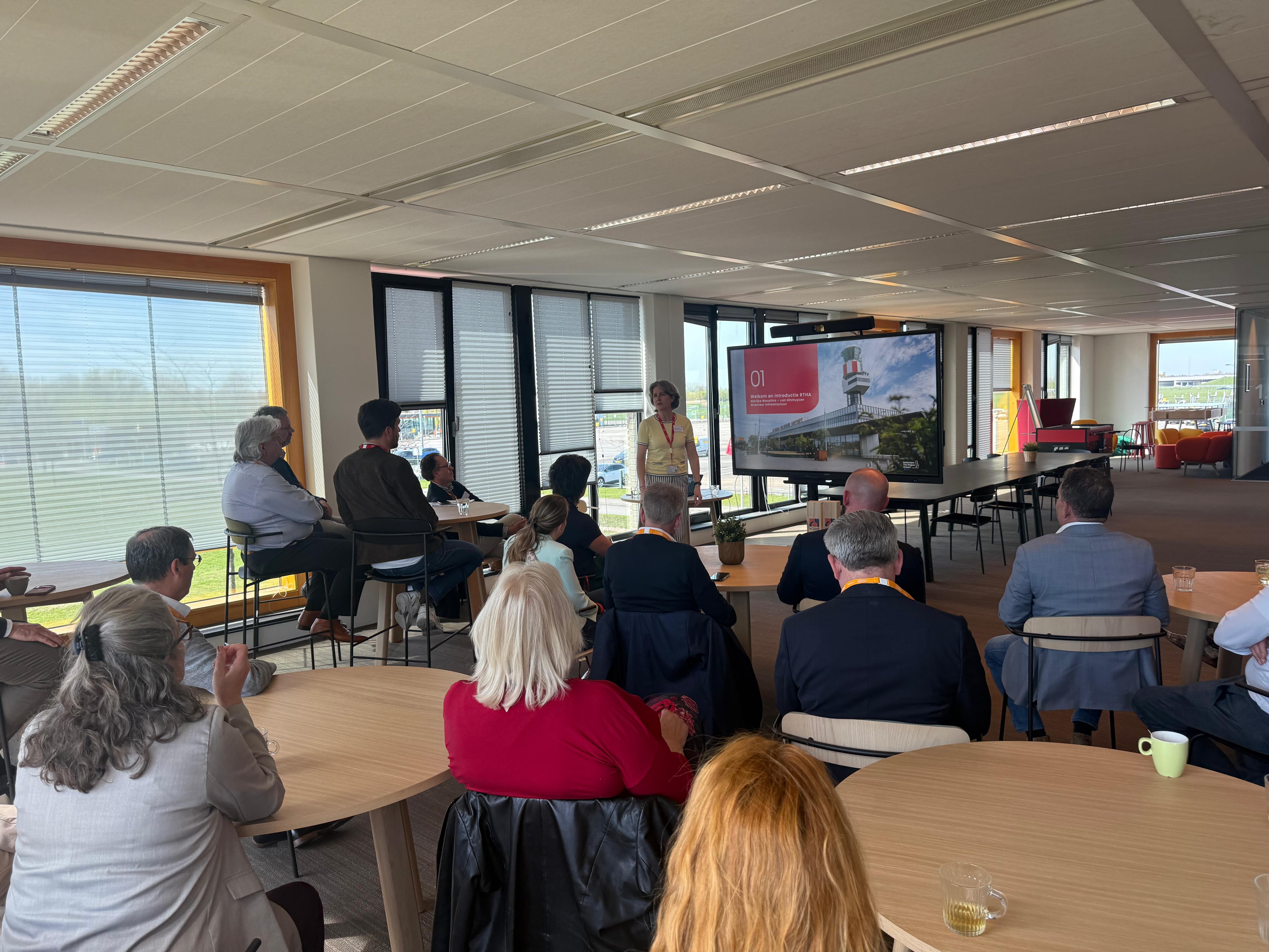De middag werd geopend door dagvoorzitter Anton van den Heuvel, waarna Marijke Weustink, Directeur Infrastructuur bij Rotterdam The Hague Airport, de aanwezigen meenam in de actuele ontwikkelingen rondom de luchthaven. Zij ging in op de geplande vernieuwing van de terminal, de verbetering van passagiersprocessen en de manier waarop infrastructuur en ruimtelijke kwaliteit samenkomen in een toekomstbestendige luchthaven.