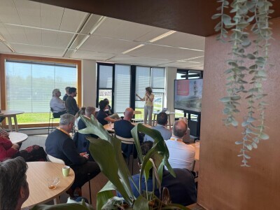 Aansluitend nam Daan van Dijk, Senior Innovator bij Rotterdam The Hague Airport, het stokje over. Hij gaf inzicht in de rol van innovatie binnen de luchthaven, met concrete voorbeelden van duurzame technologieën en toepassingen, waaronder de inzet van waterstof en de vertaling van innovaties naar de dagelijkse praktijk.