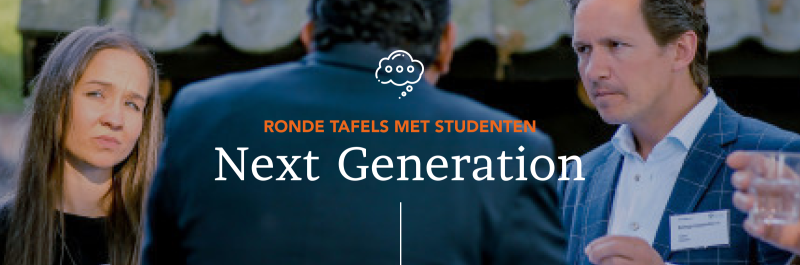 Ronde tafel setting op onderwijsinstelling met aansluitend lunch voor circa 5 deelnemers. Tijdens de bijeenkomst worden deelnemers uitgedaagd door studenten om als de expert hun kennis te delen.
